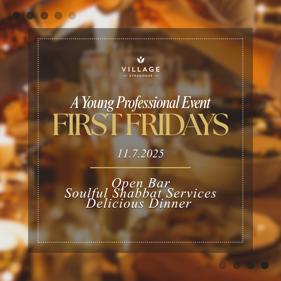 Join Rabbi Zalmy, Chana and the greatest YP’s in WeHo for First Friday’s December. Join us for an open bar followed by a delicious dinner.